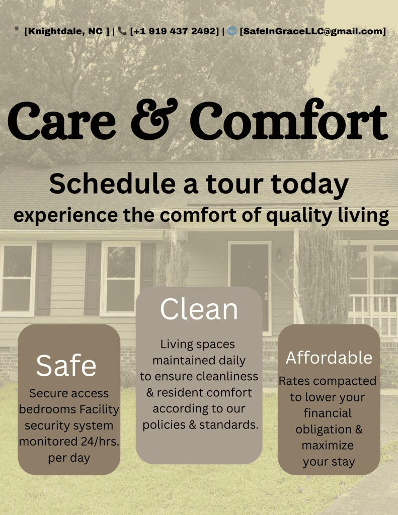 At Safe In Grace, we offer a safe and structured environment where women can begin a fresh chapter. Our mission is to help residents overcome addiction, escape unsafe situations, and regain stability. Through guidance, accountability, and community support, we help women restore family connections, develop life skills, and achieve long-term independence.
